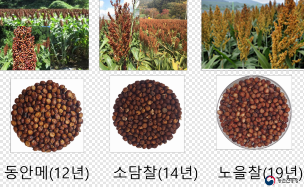농촌진흥청에서는 수수의 활용도를 높이기 위해 가공성이 우수한 찰수수 품종 '동안메'와 '소담찰', '노을찰' 등을 개발했다고 합니다.