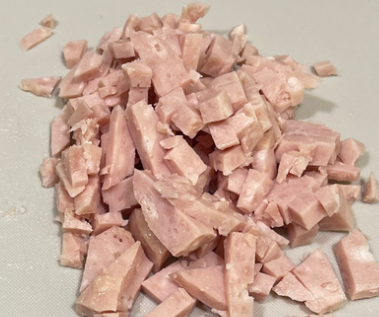 3. 햄도 잘게 다져줍니다.