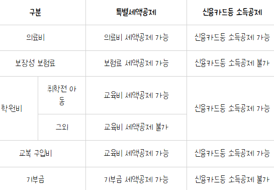 특별세액공제와 신용카드 등 소득공제 중복 적용 여부