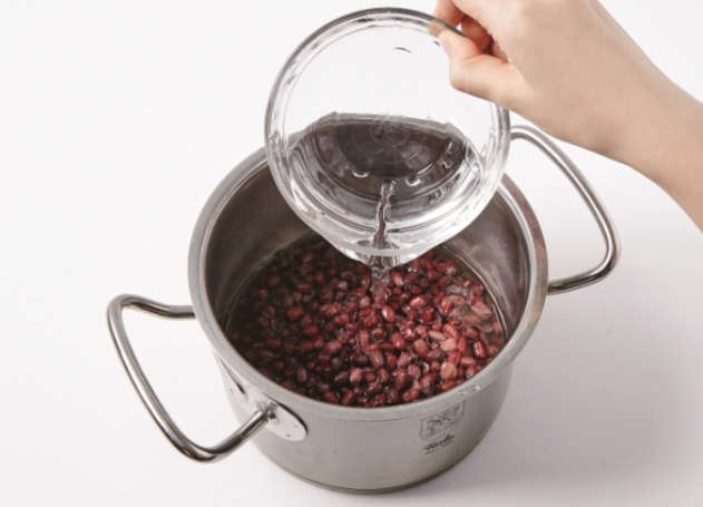 1. 팥은 찬물에 헹군 뒤 담가 반나절 이상 불립니다.