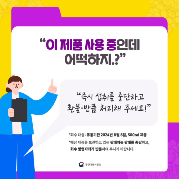 ※ 회수 대상은 유통기한 2024년 11월 8일, 포장단위 500㎖ 제품입니다.