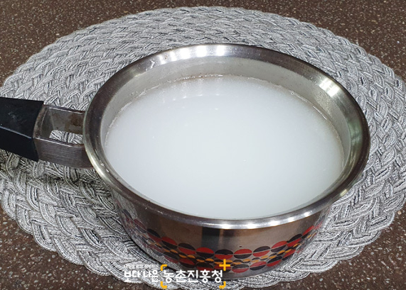 1. 냄비에 밀가루 풀 재료를 넣고 덩어리가 지지 않게 잘 저어주면서 밀가루 풀을 쑤어서 한 김 식힙니다.