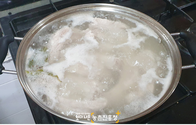 Tip : 청주 대신 맛술을 넣어도 됩니다. 핏기가 안 보일 때까지 데쳐 줍니다. 등갈비를 좀 더 부드럽게 하기 위해 좀 더 익혀도 됩니다.