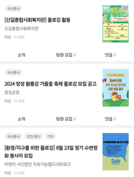 행사가 열리게 되어 공고가 올라오면 지원을 통해 플로깅에 참가할 수 있다고 합니다.