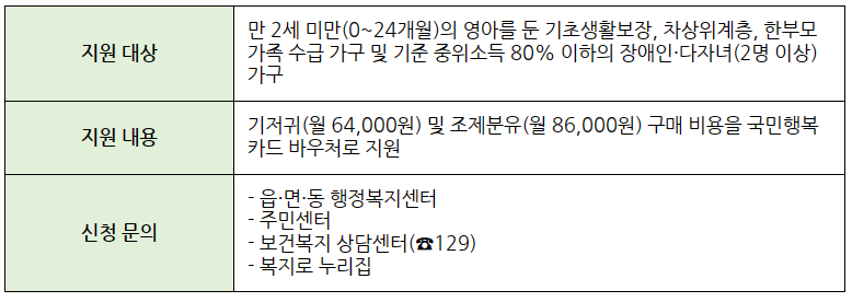 저소득층 기저귀 바우처·조제분유 지원