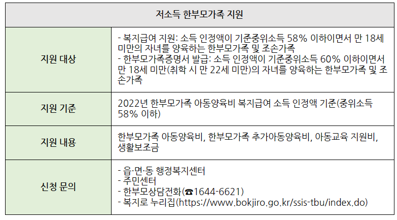 한부모가족 지원 정책 총정리