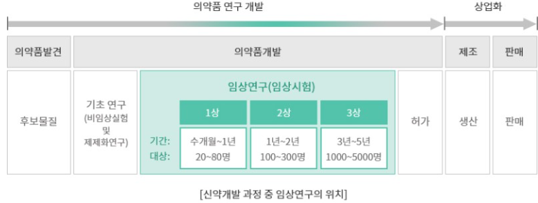 임상시험이란 임상시험용의약품의 안전성과 유효성을 위하여 사람을 대상으로 실시하는 시험 또는 연구를 말합니다. 그렇다면 임상 2상은 어떤 단계일까요? 임상 시험은 전 임상 시험, 임상 1상 시험, 임상 2상 시험, 임상 3상 시험으로 볼 수 있다고 합니다.