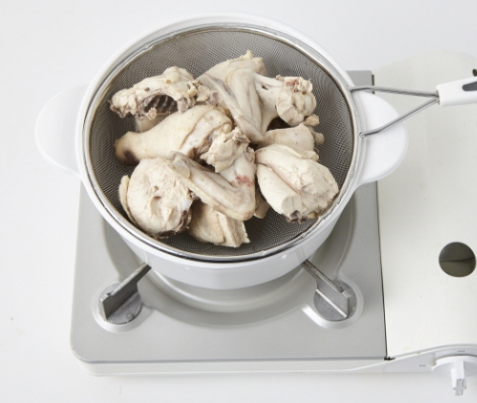 1. 끓는 물 6컵에 닭은 5분간 삶아 건져냅니다.
