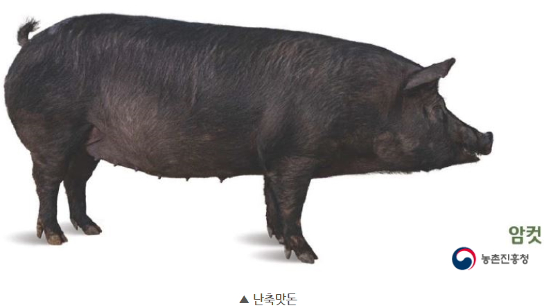 우리나라 재래돼지는 맛이 뛰어남에도 불구하고, 생산성이 낮아 농가에서 사육하기 어려웄습니다. 그래서 농촌진흥청에서 우리나라 재래돼지 혈통을 잇는 한국형 흑돼지로 맛과 영양, 생산성 모두 잡은 '우리흑돈'과 '난축맛돈'을 개발했다고 합니다.