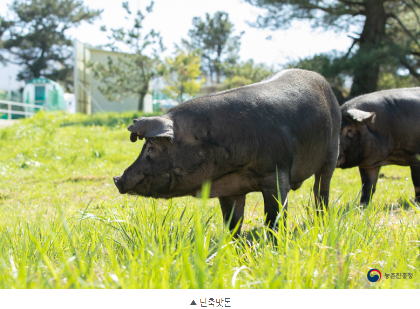 우리나라 재래돼지는 맛이 뛰어남에도 불구하고, 생산성이 낮아 농가에서 사육하기 어려웄습니다. 그래서 농촌진흥청에서 우리나라 재래돼지 혈통을 잇는 한국형 흑돼지로 맛과 영양, 생산성 모두 잡은 '우리흑돈'과 '난축맛돈'을 개발했다고 합니다.