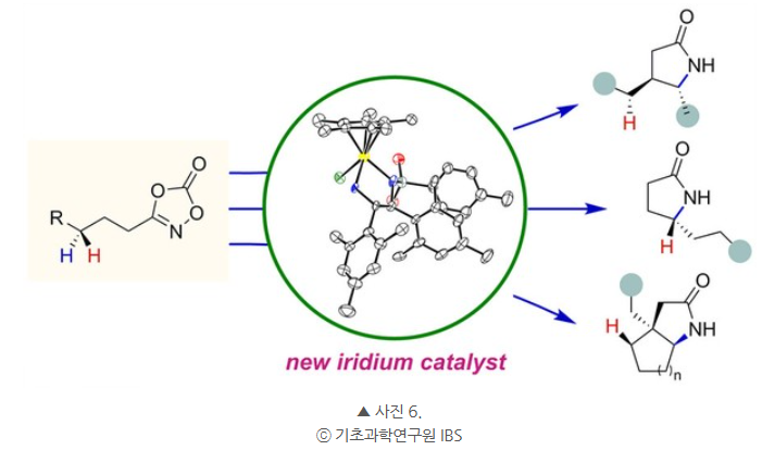 그러나 기초과학연구원(IBS)은 분자 활성 촉매반응 연구단 장석복 단장과 박윤수 연구원이 2개의 거울상 이성질체 중 한 종류의 분자만을 선택적으로 합성하는 새로운 촉매를 개발했고, 이를 이용해 탄화수소화합물을 의약품 필수 재료인 카이랄 락탐으로 제조하는 데 성공했다고 밝혔다고 합니다. 연구진은 카이랄 다이아민(Chiral Diamine) 골격을 포함한 이리듐 촉매가 99% 이상의 정확도로 거울상을 선택할 수 있다는 것을 발견했다는 것입니다. 또 이 촉매와 탄화수소화합물을 이용해 의약품의 기반 화합물인 락탐(Lactam)을 만드는 경우, 회전 방향을 결정할 수 있는 것으로 나타났다고 합니다. 이때, 락탐은 분자 내에 CONH 결합을 함유하고 고리 모양 질소화합물을 의미한다고 합니다. 왼쪽 회전 유형을 가진 이리듐 촉매를 사용할 경우에는 왼손잡이 성 감마-락탐이, 오른 잡이 성 이리듐 촉매를 사용하면 오른손잡이 성 감마-락탐을 제조할 수 있다고 합니다. 그뿐만 아니라, 높은 선택성의 원인에 대해서도 분석했다고 합니다.