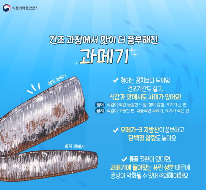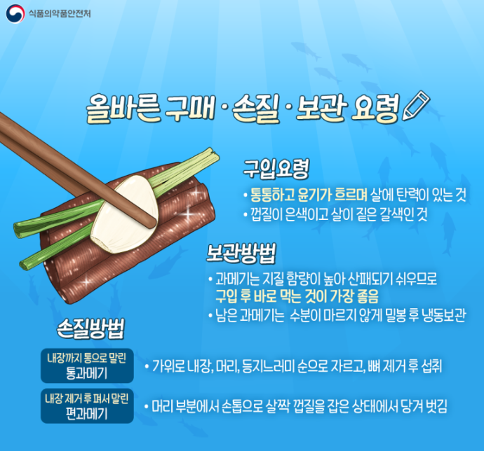 ✔ 과메기는 지질 함량이 높아 산패되기 쉬우므로 구입 후 바로 먹는 것이 가장 좋음