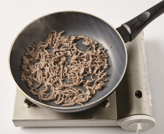 5. 같은 팬에 식용유를 약간 더 둘러 소고기를 볶아줍니다.