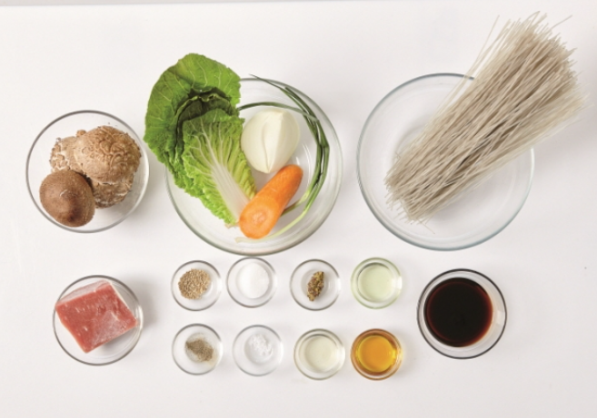 1. 표고버섯, 봄동, 양파, 당근, 소고기는 채 썰고, 쪽파는 송송 썰어줍니다.