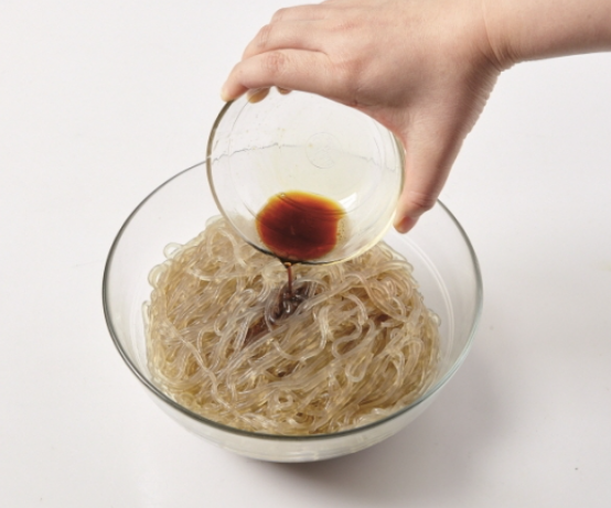 7. 식기 전에 간장, 참기름을 넣고 버무려 한 김 식힙니다.