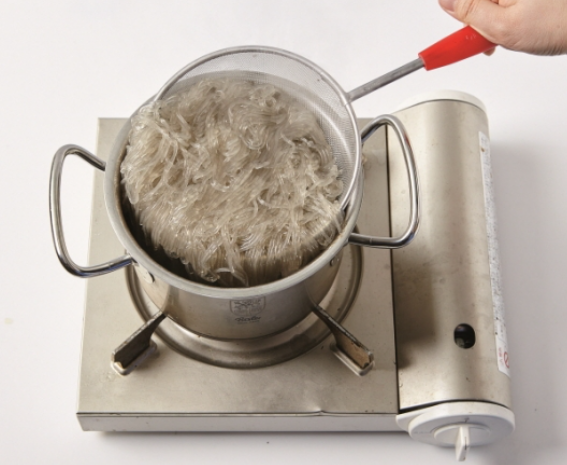 6. 끓는 물에 당면을 넣어 8분간 삶아 건져줍니다.