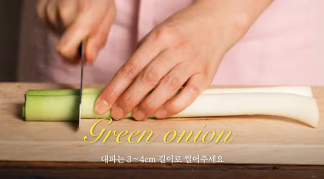 3. 팬에 기름을 두르고 중약불에서 대파를 굽습니다.