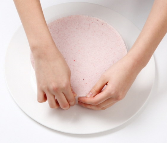 1. 딸기를 깨끗하게 씻어 물기를 제거하고 으깨어 쌀가루에 섞어 소금을 넣고 중간체에 3번 내립니다.