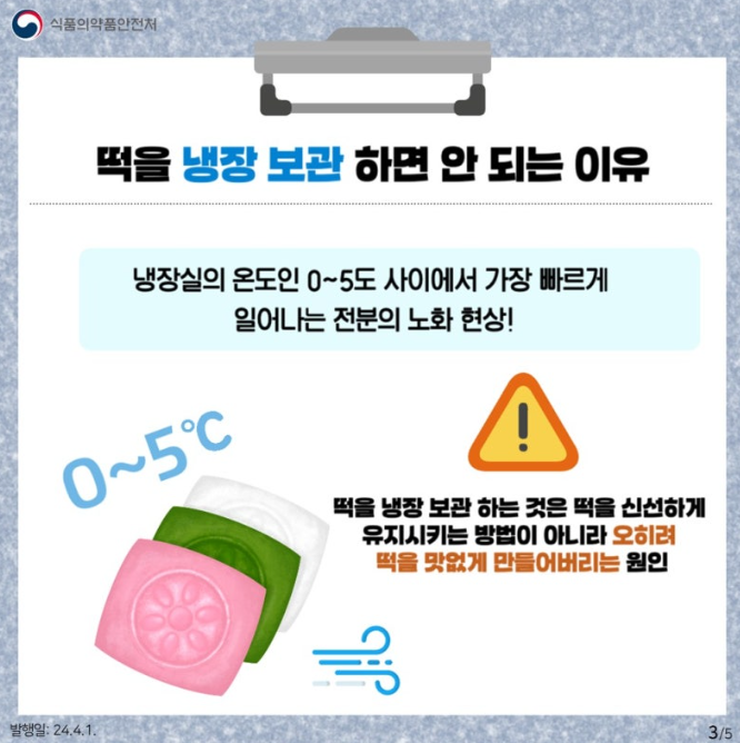 따라서 떡을 냉장 보관 하는 것은 떡을 신선하게 유지시키는 방법이 아니라 오히려 떡을 맛없게 만들어버리는 원인이 되는 셈이라고 합니다.