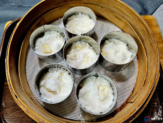 바로 쪄 내 뜨거우니 조심해서 한 김 식힌 후 접시에 옮겨 담습니다.