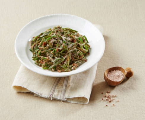 부추는 한식에서 전으로 많이 쓰이고 있습니다. 오늘은 색다르게 부추를 무침에 이용한 요리입니다. 특히 정제된 흰 밀가루 대신 통곡물인 수수가루를 이용해 보다 고소한 맛과 영양을 높인 음식입니다.