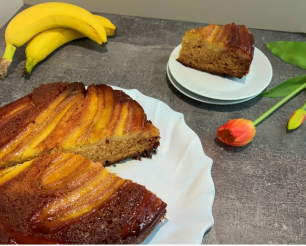그래서 오늘은 바나나를 활용한 케이크 만드는 방법을 소개해 드리겠습니다. 일명 '단짠(달고 짠)' 맛을 내는 '솔티드 카라멜 바나나케이크'입니다. 수제 카라멜에 바나나를 올린 뒤 케이크 반죽을 덮어 구운 후, 뒤집으면 완성됩니다.
