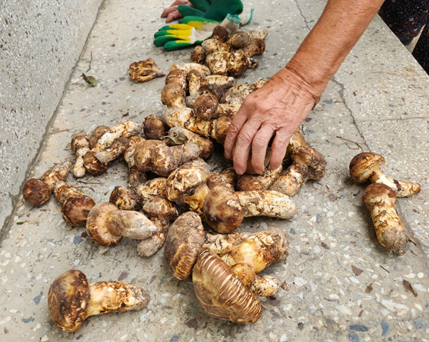 정말 많죠? 가족들이 모두 모여 이 송이버섯을 먹으려 합니다.