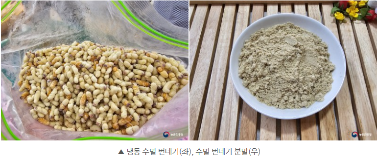 2020년에 식품원료로 등록했고, 2021년에도 이름 짓기 대국민 공모전을 열었습니다. 꿀을 먹고 자란 번데기 '꿀데기'라는 새 이름도 가지게 됐습니다. 작년에는 일반식품으로 전환되도록 제도 개선뿐 아니라 가공식품도 개발해 방송 홍보했다고 합니다. 올해는 농촌진흥청 국민정책디자인 과제로 선정되어 활발한 활동을 이어가고 있다고 합니다.