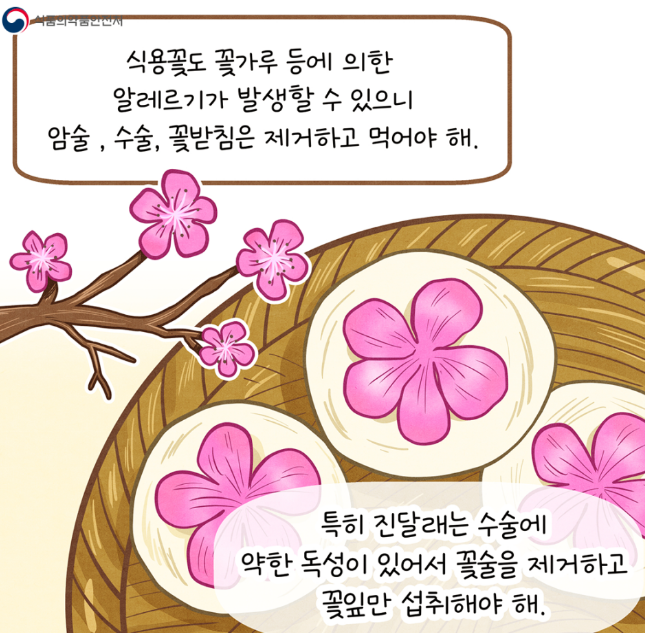 특히 진달래는 수술에 약한 독성이 있어서 꽃술을 제거하고 꽃잎만 섭취해야 한다고 합니다.