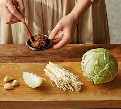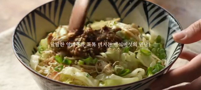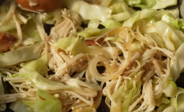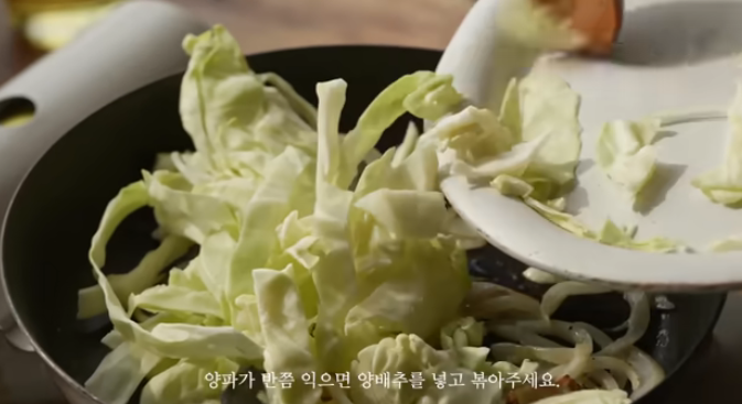 양배추가 알맞게 익으면서 단 맛도 은은하게 납니다. 여기에 톡톡 터지는 팽이버섯 식감이 입안을 즐겁게 합니다.