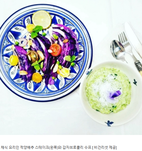조리법은 간단합니다. 2~3cm로 두툼하게 자른 양배추에 소금, 후추로 간을 합니다. 팬에 올리브유를 두르고 마늘을 볶다가 양배추를 넣습니다. 노릇해질 때까지 구운 후 팬에 버터를 넣고 뒤집어 굽습니다. 위에 모짜렐라치즈를 올리고 뚜껑을 덮은 채 1분간 구우면 완성입니다. 그릭 요거트를 소스로 곁들여도 좋습니다.
