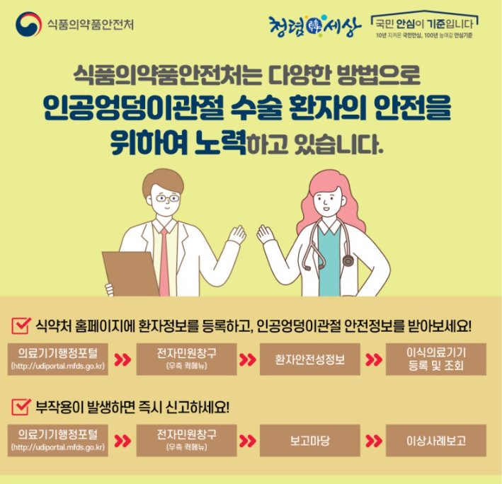 ☑ 피식약처 홈페이지에서 환자 정보를 등록하고, 인공엉덩이관절 안전정보를 받아보세요!