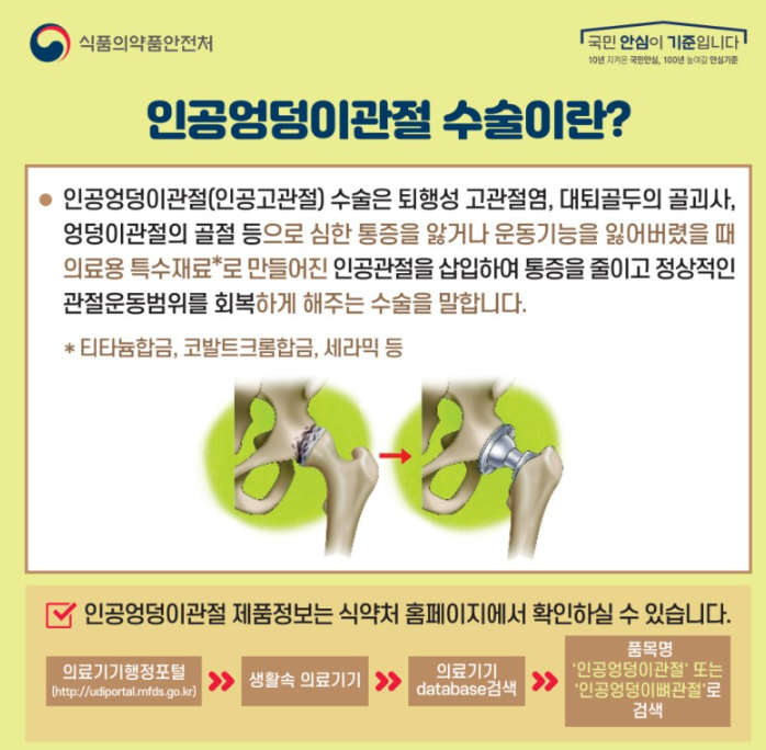 ※ 인공엉덩이관절 제품정보는 식약처 홈페이지에서 확인할 수 있습니다.