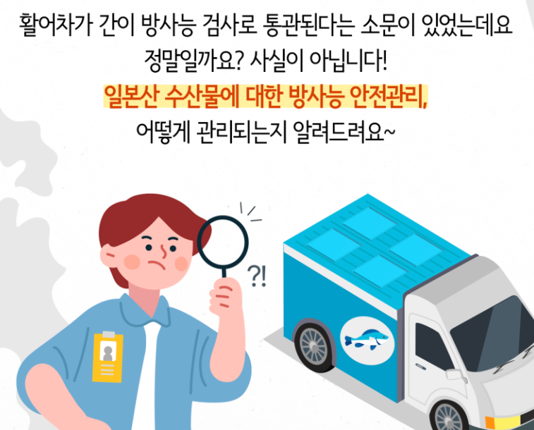 활어차가 간이 방사능 검사로 통관된다는 소문이 있었는데 사실이 아니라고 합니다. 일본산 수산물에 대한 방사능 안전관리, 어떻게 관리되는지 알아보겠습니다.