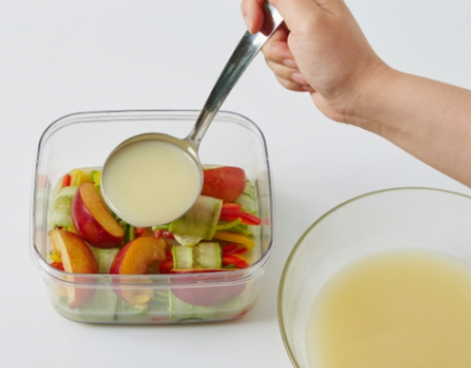 자두와 함께 오이로 둘둘 말은 채소말이가 들어갑니다. 한정식으로 나오는 요리처럼 모양도 근사한데, 지인을 초대한 식사 자리에서 내놓기 좋습니다.
