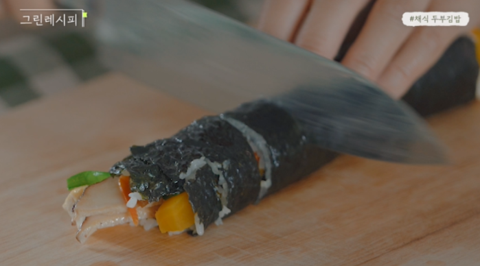 쫄깃한 두부의 식감을 느낄 수 있는 채식 두부김밥이 완성됐습니다.