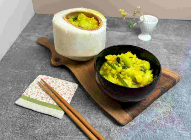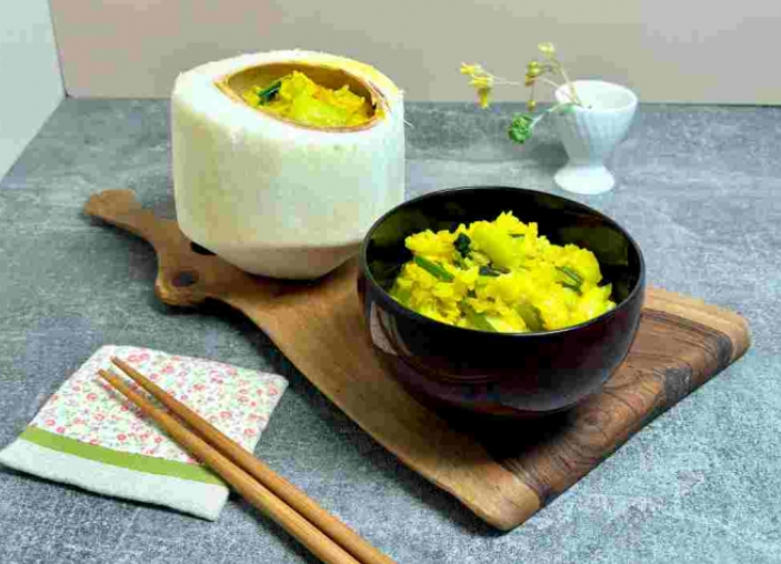 오늘 소개해 드릴 요리는 '크리미 코코넛 라이스'입니다. 코코넛워터와 밀크를 야채와 함께 끓인 후 함께 섞은 요리입니다. 마늘, 대파, 샬롯, 청경채, 시금치 등이 코코넛 크림과 잘 어우러져 독특한 맛을 냅니다. 보다 이국적인 분위기를 내고 싶다면 국산쌀 대신 재스민쌀을 이용하면 좋습니다. 현지 음식의 식감을 제대로 즐길 수 있습니다.