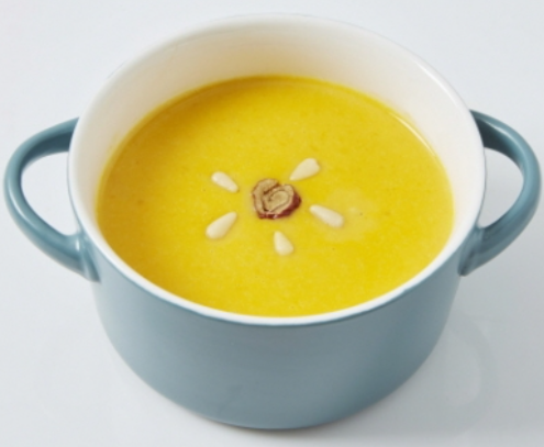 단호박 1통(600g), 찹쌀 1/2컵, 우유 1.5컵, 대추 2개, 소금 약간, 잣 1/2 스푼