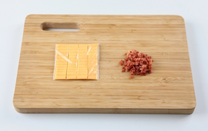 3. 슬라이스 치즈와 베이컨으 잘게 썰어줍니다.